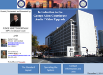 In 2014, the Commissioners Court of Dallas County authorized a significant upgrade to the audio visual equipment installed in the George Allen Courthouse. The equipment and technology is designed to facilitate the presentation of testimony, evidence and argument while simultaneously leveling the playing field between litigants. The system was designed and installed by a company named Visionality. Austin Jones worked with Judge Martin Hoffman, Crystal Jamison and Visionality to develop a presentation that would provide attorneys, witnesses, vendors, litigation support departments and presiding judges with the information necessary to operate the courtroom equipment. A PDF copy of the presentation can be downloaded below and will be updated as the system is further refined.